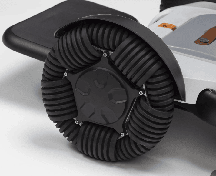 Sähköpyörätuoli on varustettu huoltovapailla, ilmattomilla joustorenkailla, jotka vaimentavat tehokkaasti tärinää ja takaavat tasaisen ajotuntuman. Renkaat toimivat luotettavasti myös kylmissä olosuhteissa ja soveltuvat erityisesti kaupunkiympäristöön sekä sisätiloihin.