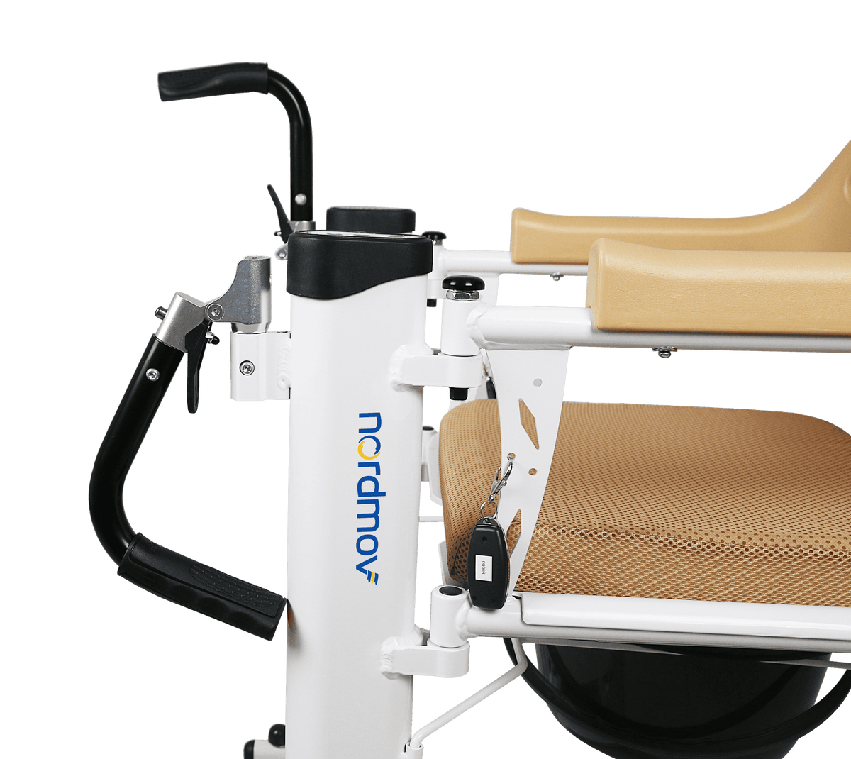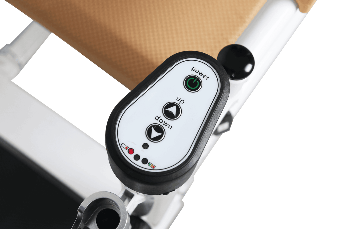Varustettu edistyksellisellä sähköisellä nostomekanismilla, jonka avulla potilaan siirtäminen ja tuolin korkeuden säätäminen onnistuu helposti ilman raskasta nostamista. Nostoa ja laskua ohjataan kätevästi helppokäyttöisellä kaukosäätimellä. Sähköinen nostojärjestelmä vähentää hoitajan fyysistä kuormitusta ja helpottaa hoivatilanteita niin kotona kuin ammattilaiskäytössä.