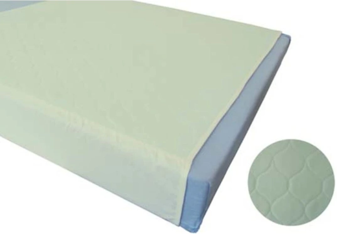 Materiaali: Pohja on polyesteria ja välikerros vedenpitävää polyuretaania. Mukavan ja pehmeän valkoisen mikrokuitupäällisen alla on erittäin imukykyinen polyesteri/viskoosi imukerros, jonka imukyky on yli 2 litraa/ neliö pysyen pinnasta kuivana.